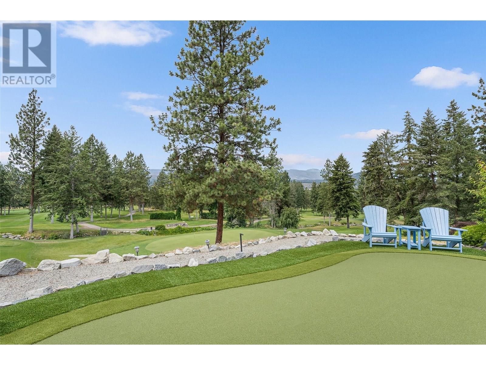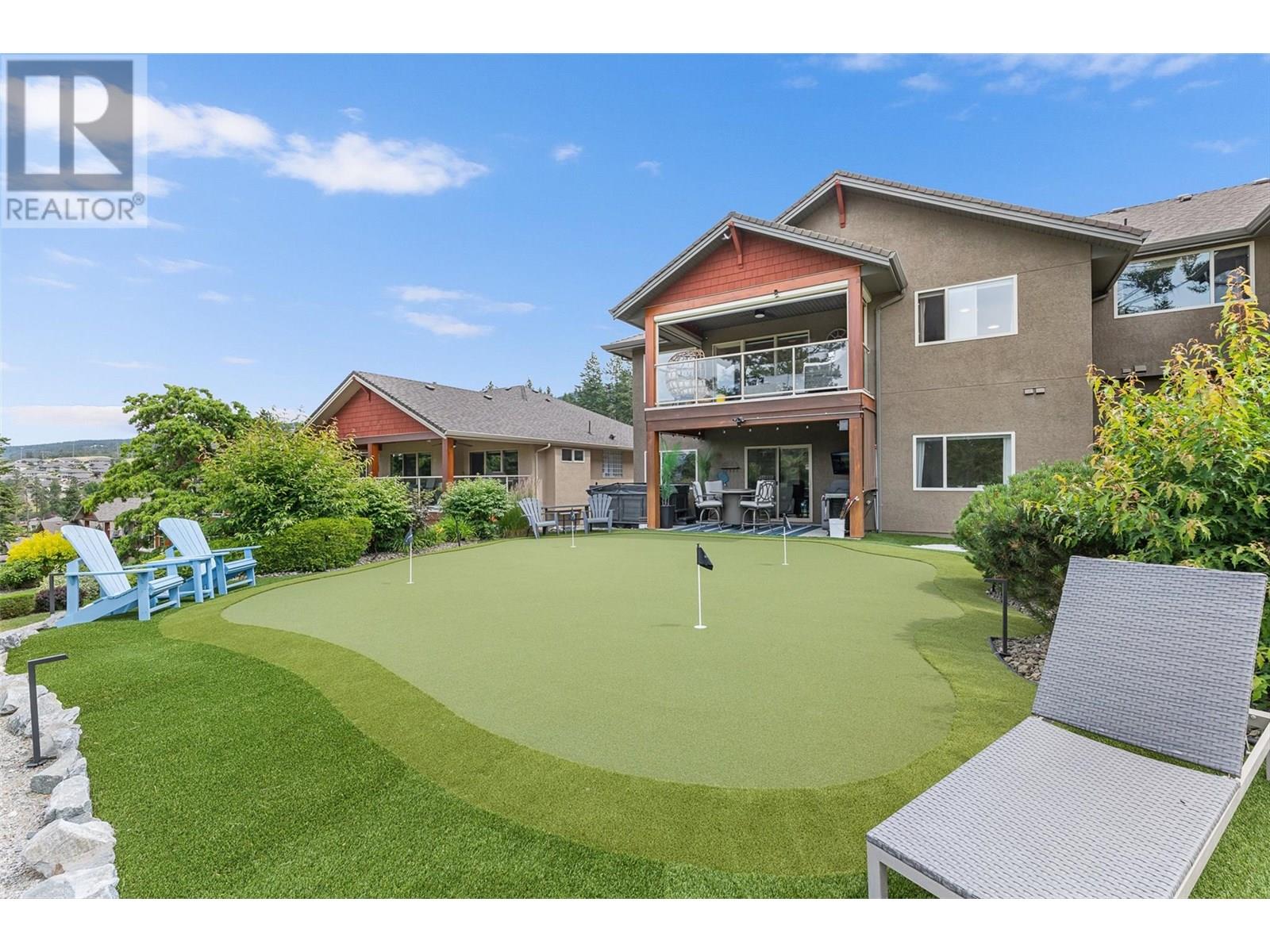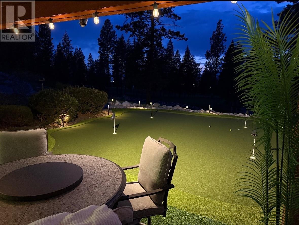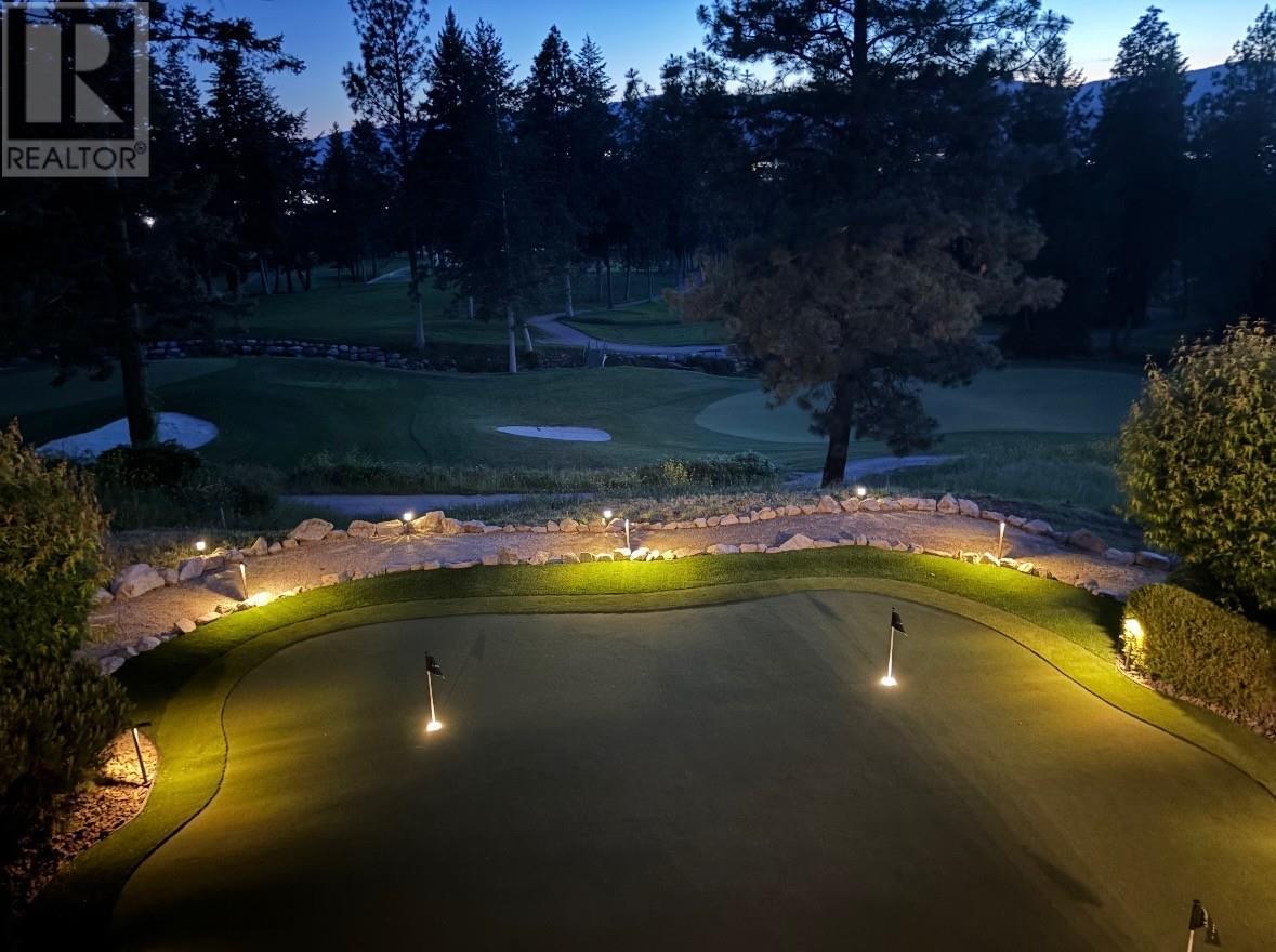 $299 MonthlyStylishly updated and perfectly positioned on the 2nd and 13th green at Sunset Ranch, this golf-side villa offers the ideal blend of privacy, luxury, and low-maintenance living. Bathed in natural light, the main level showcases an open-concept layout with vaulted ceilings, warm toned hardwood floors, and a freshly updated kitchen with granite counters, stainless steel appliances, and soft blue cabinetry that adds a designer touch. Enjoy seamless indoor-outdoor living with a spacious dining area and covered balcony overlooking the lush greenway complete with electric privacy shades and tranquil golf course views. A custom-designed office by Taylor Living, elegant lighting upgrades, and a professionally installed putting green with ambient lighting. The main level includes a generous primary suite with walk-in closet and ensuite, while the lower level offers a large family room, guest bedrooms, and ample space for entertaining or extended family stays. Bonus opportunity: the neighbouring unit is also available an incredibly rare chance to purchase side-by-side homes for multi-generational living in one of Kelowna’s most scenic gated communities. (id:58444)