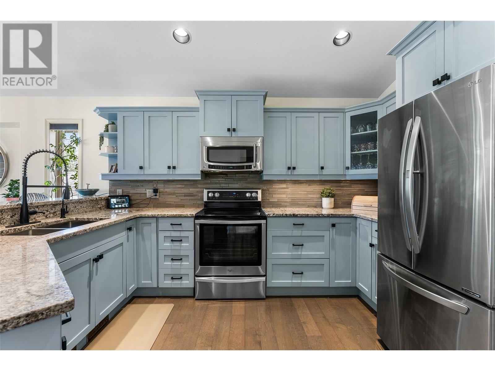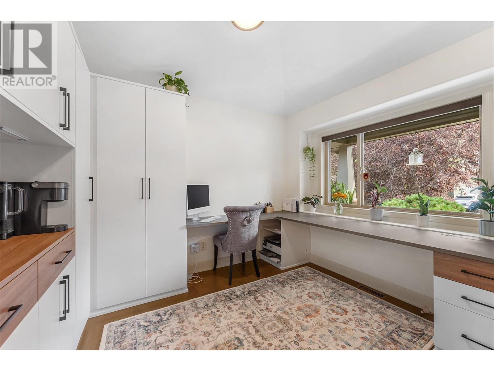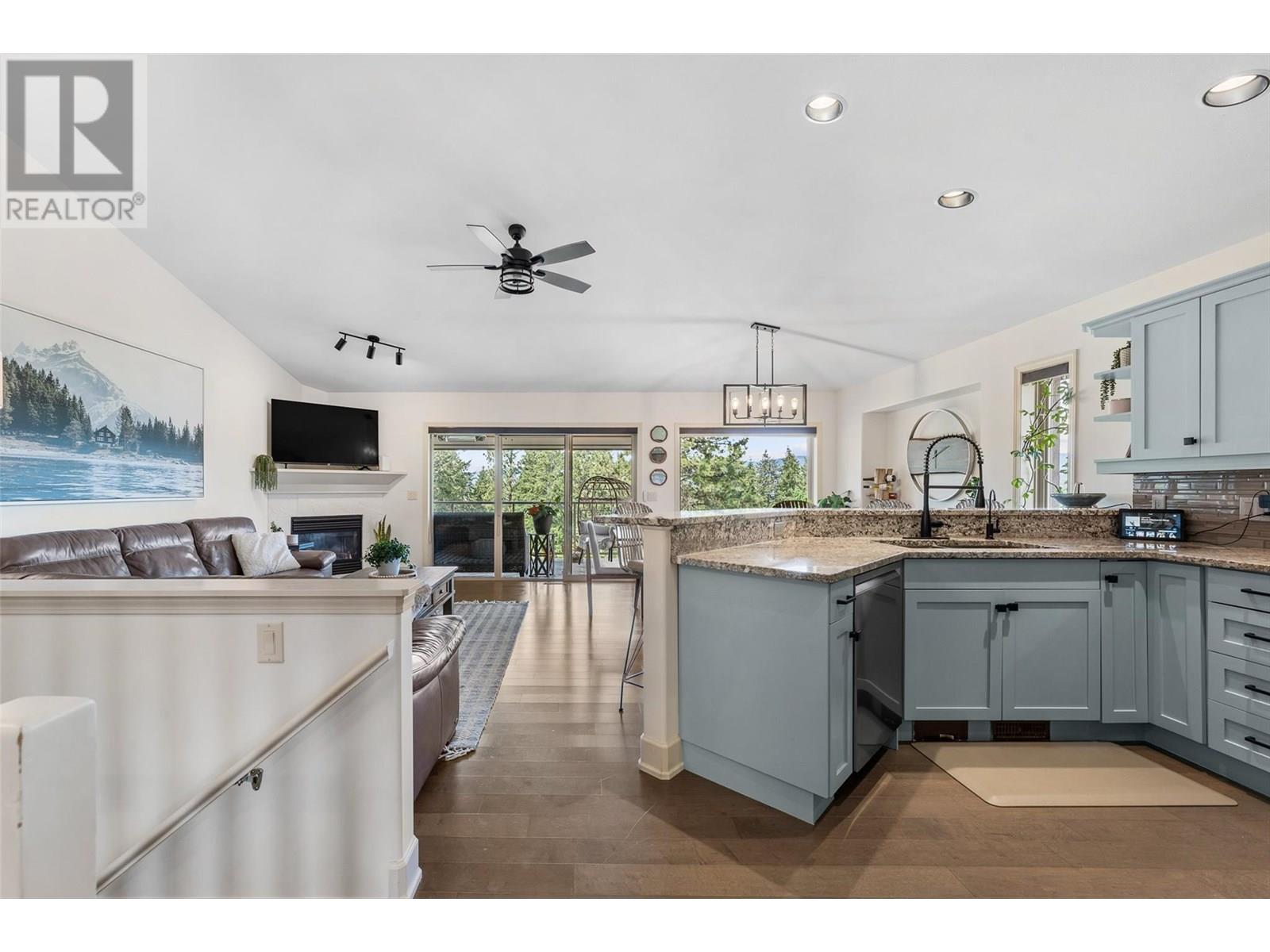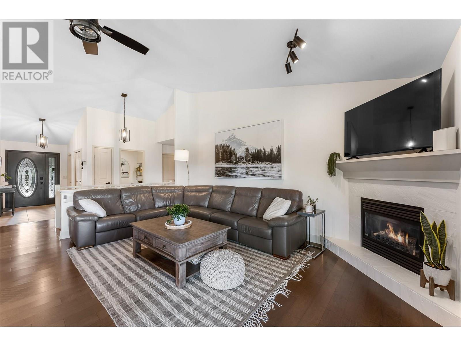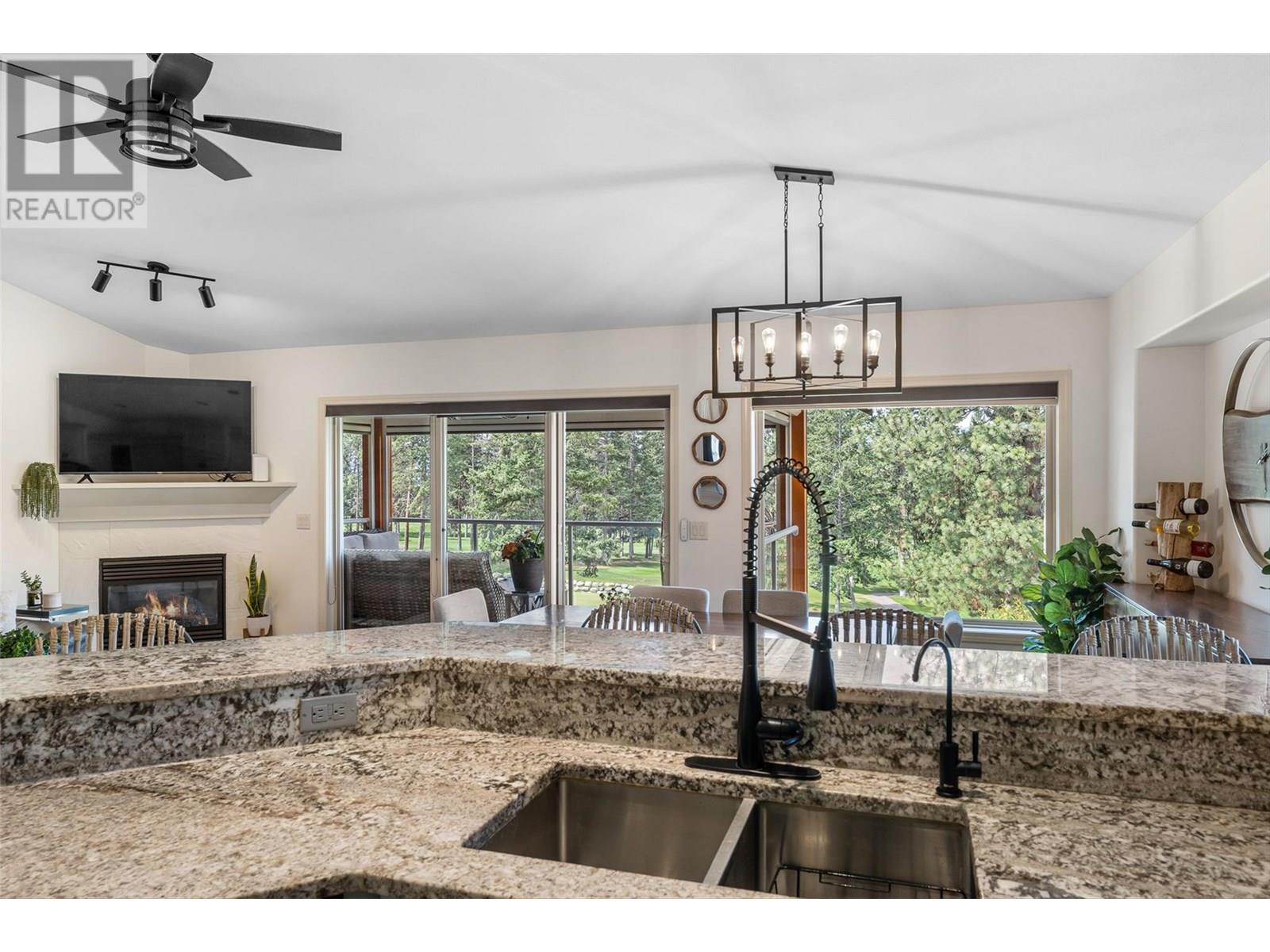 $299 MonthlyStylishly updated and perfectly positioned on the 2nd and 13th green at Sunset Ranch, this golf-side villa offers the ideal blend of privacy, luxury, and low-maintenance living. Bathed in natural light, the main level showcases an open-concept layout with vaulted ceilings, warm toned hardwood floors, and a freshly updated kitchen with granite counters, stainless steel appliances, and soft blue cabinetry that adds a designer touch. Enjoy seamless indoor-outdoor living with a spacious dining area and covered balcony overlooking the lush greenway complete with electric privacy shades and tranquil golf course views. A custom-designed office by Taylor Living, elegant lighting upgrades, and a professionally installed putting green with ambient lighting. The main level includes a generous primary suite with walk-in closet and ensuite, while the lower level offers a large family room, guest bedrooms, and ample space for entertaining or extended family stays. Bonus opportunity: the neighbouring unit is also available an incredibly rare chance to purchase side-by-side homes for multi-generational living in one of Kelowna’s most scenic gated communities. (id:58444)