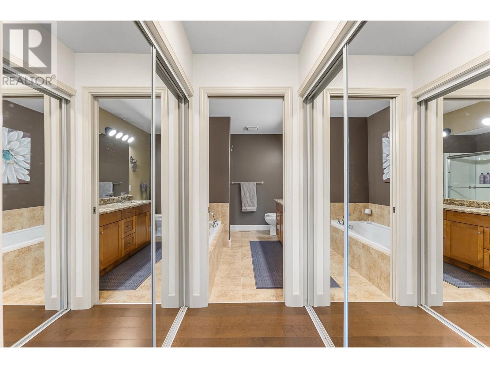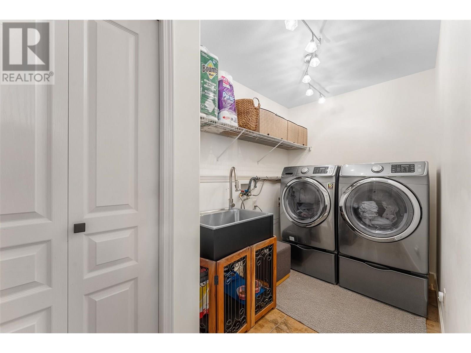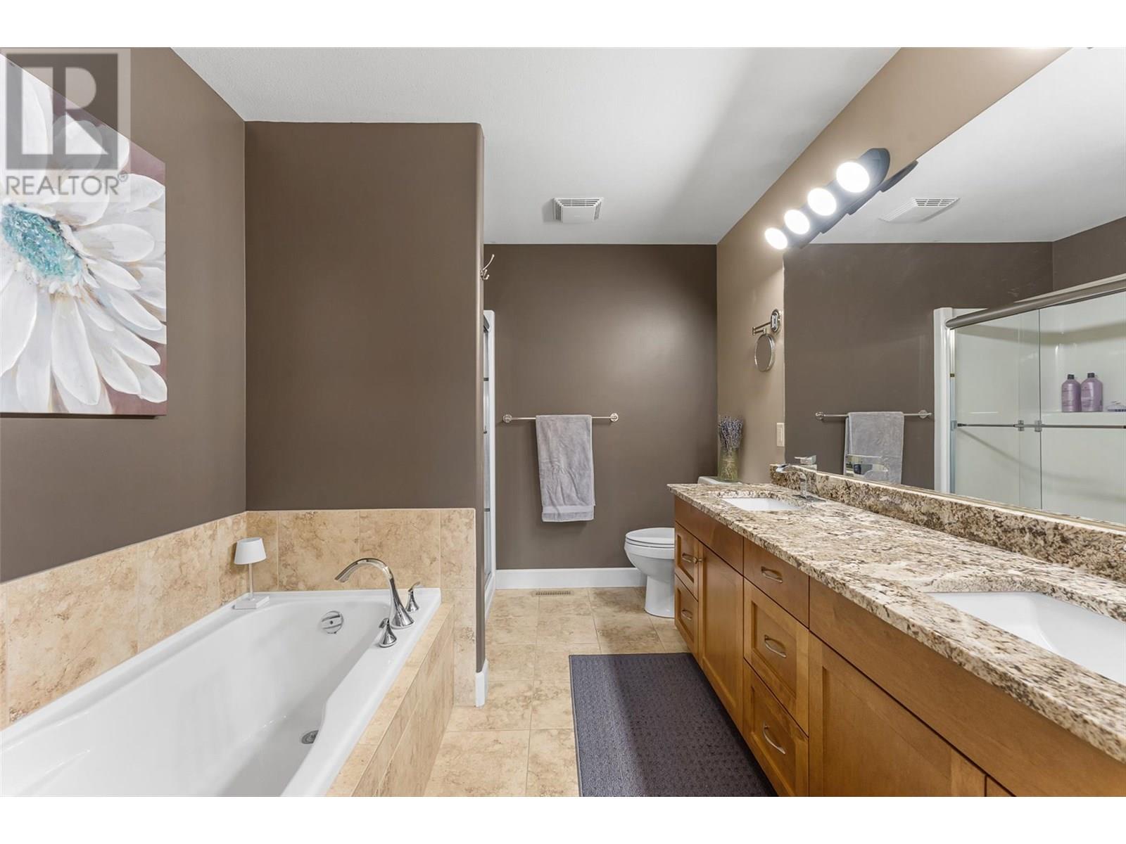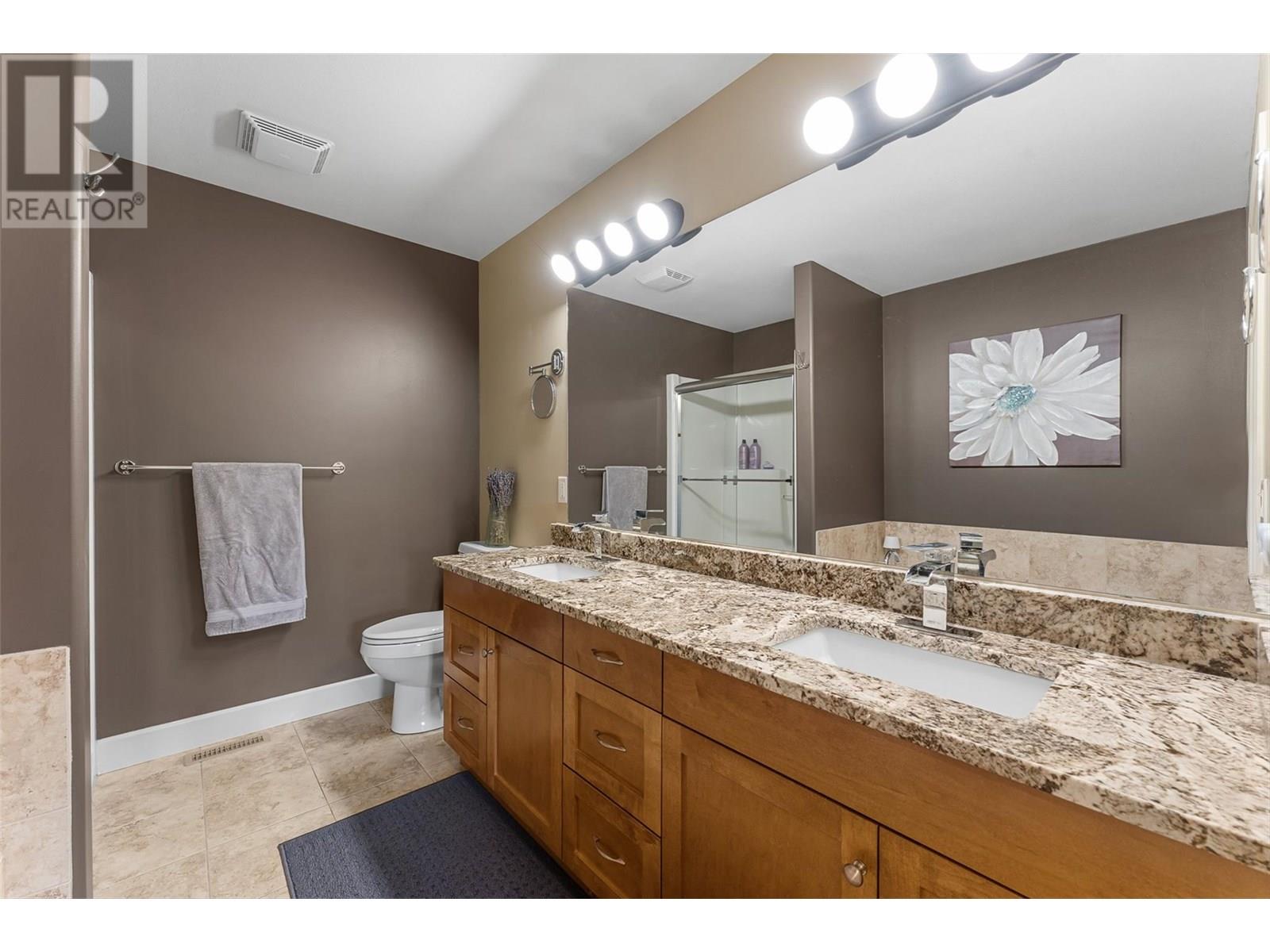 $299 MonthlyStylishly updated and perfectly positioned on the 2nd and 13th green at Sunset Ranch, this golf-side villa offers the ideal blend of privacy, luxury, and low-maintenance living. Bathed in natural light, the main level showcases an open-concept layout with vaulted ceilings, warm toned hardwood floors, and a freshly updated kitchen with granite counters, stainless steel appliances, and soft blue cabinetry that adds a designer touch. Enjoy seamless indoor-outdoor living with a spacious dining area and covered balcony overlooking the lush greenway complete with electric privacy shades and tranquil golf course views. A custom-designed office by Taylor Living, elegant lighting upgrades, and a professionally installed putting green with ambient lighting. The main level includes a generous primary suite with walk-in closet and ensuite, while the lower level offers a large family room, guest bedrooms, and ample space for entertaining or extended family stays. Bonus opportunity: the neighbouring unit is also available an incredibly rare chance to purchase side-by-side homes for multi-generational living in one of Kelowna’s most scenic gated communities. (id:58444)